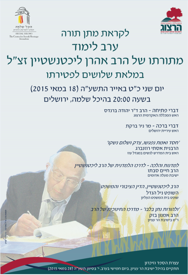 בית » Conferences » ערב לימוד מתורתו של הרב אהרן ליכטנשטיין זצ”ל