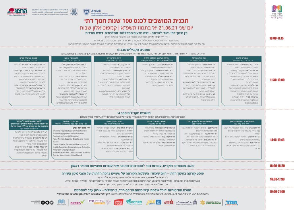תוכניה – כנס 100 שנות הכשרת מורים בחינוך הדתי